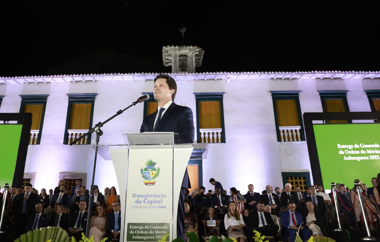 Vice-governador enaltece investimentos em educação, saúde e patrimônio durante a entrega da Comenda da Ordem do Mérito Anhanguera, parte das comemorações pela transferência simbólica da capital