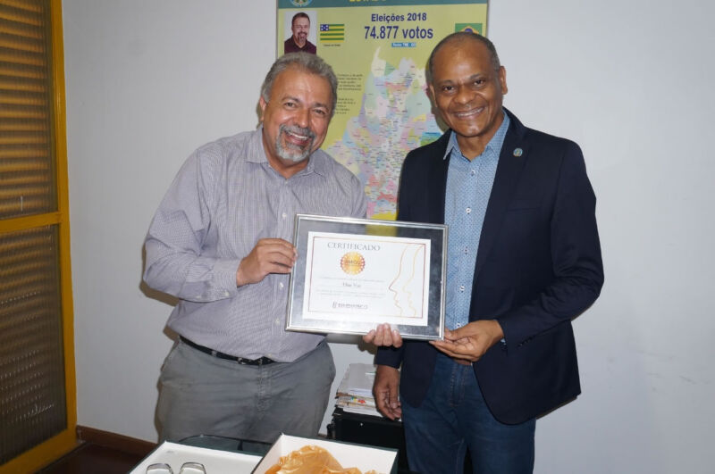 O Diretor-Presidente do Sindifisco-GO, Paulo Sérgio Carmo, foi recebido pelo deputado federal Elias Vaz (PSB-GO) em seu escritório político na sede do Diretório Estadual do PSB em Goiás e em agradecimento pela atuação firme do parlamentar em prol dos interesses da administração tributária na Câmara Federal em Brasília (DF), foi entregue o certificado “Amigo Fisco”.