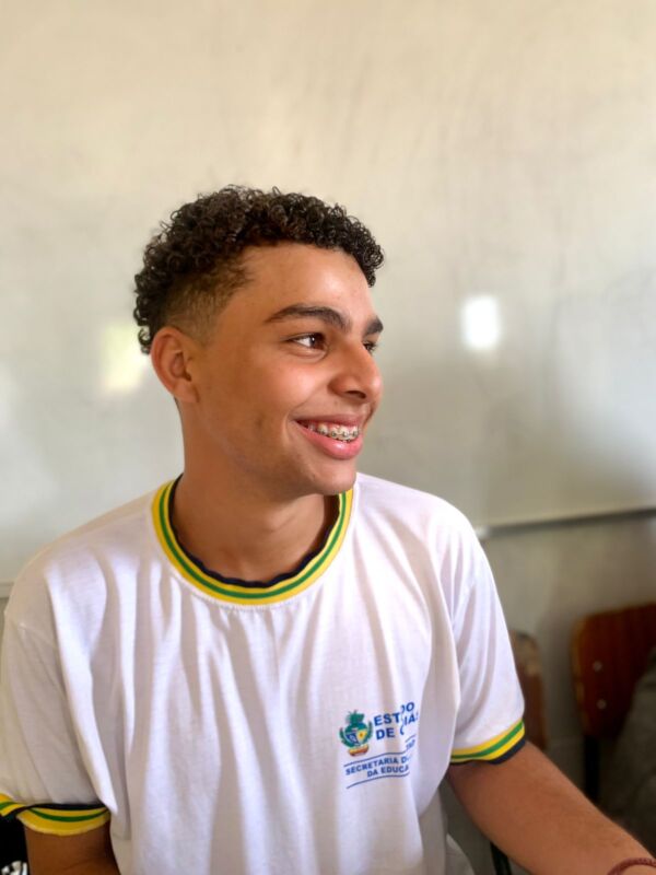 Jean Pereira dos Santos, de 16 anos, está na 2ª série do Ensino Médio e é estudante do programa GoiásTec. O estudante, que é morador da Comunidade Quilombola Calunga Engenho 2, conta que ficou muito ansioso ao longo das etapas do processo seletivo.