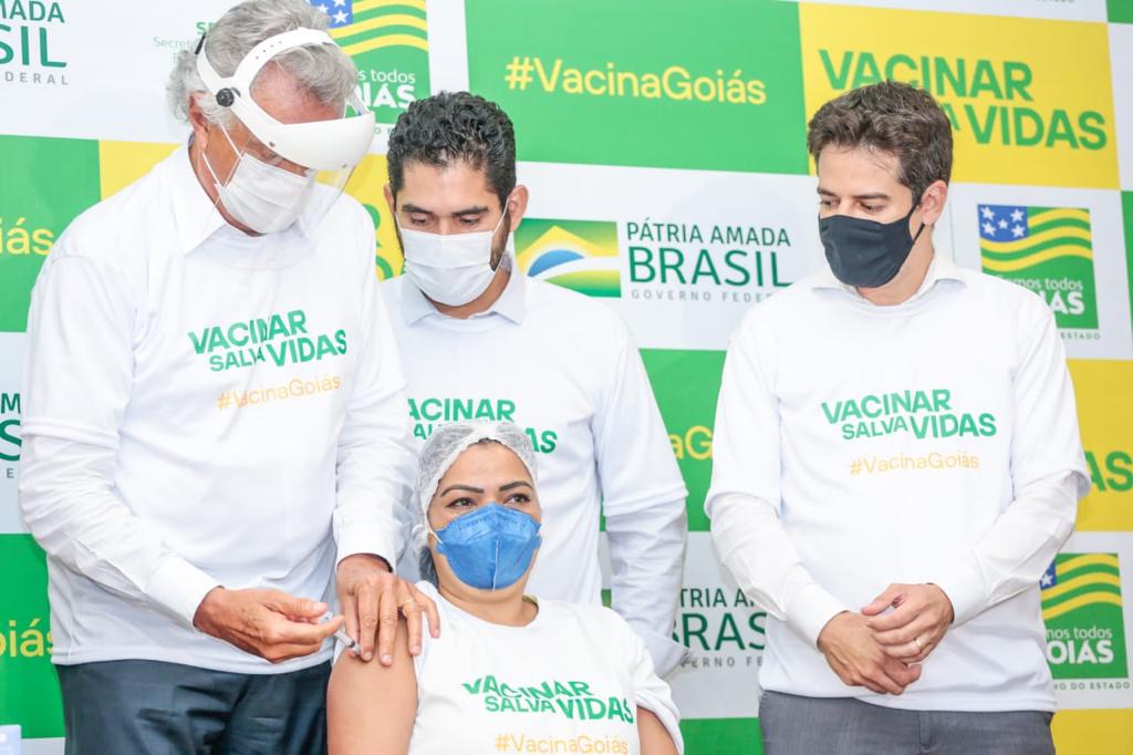 Durante vacinação dos primeiros profissionais de saúde em Goiás, Caiado enaltece ciência e “tempo recorde” para vacinas serem liberadas